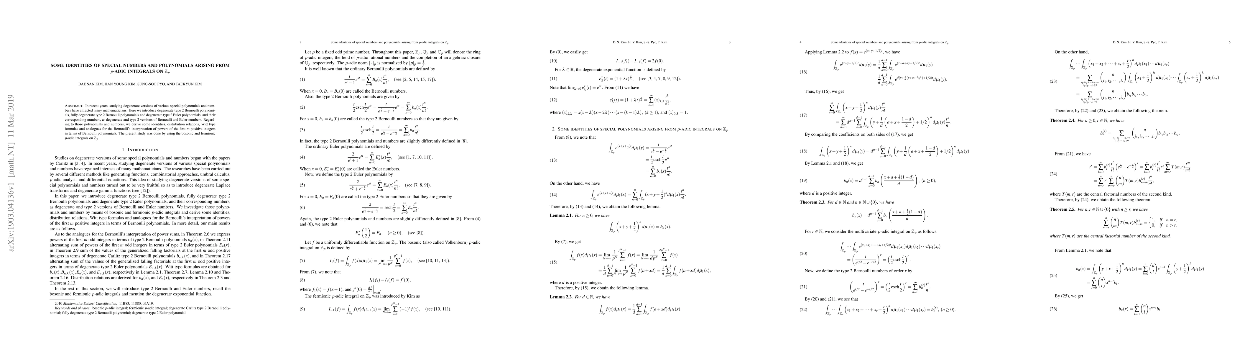 In recent years, studying degenerate versions of various special polynomials and numbers have attracted many mathematicians. Here we introduce degenerate type 2 Bernoulli polynomials, fully degenerate type 2 Bernoulli polynomials and degenerate type 2 Euler polynomials, and their corresponding numbers, as degenerate and type 2 versions of Bernoulli and Euler numbers. Regarding to those polynomials and numbers, we derive some identities, distribution relations, Witt type formulas and analogues for the Bernoulli's interpretation of powers of the first $m$ positive integers in terms of Bernoulli polynomials. The present study was done by using the bosonic and fermionic $p$-adic integrals on $\mathbb{Z}_p$.