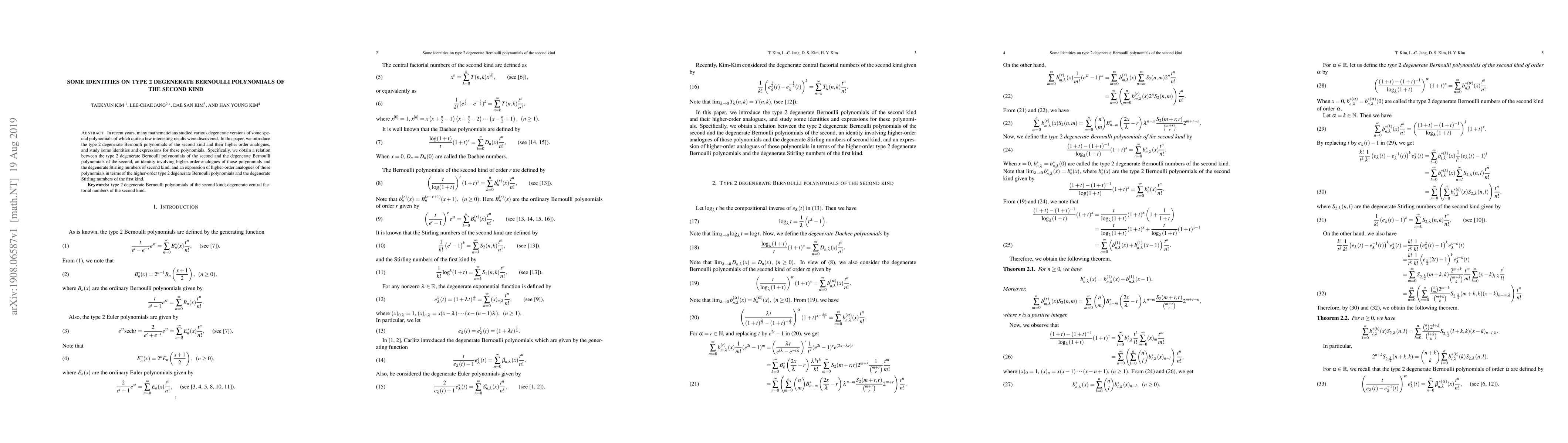 This paper introduces type 2 degenerate Bernoulli polynomials of the second kind and explores their identities and expressions. It establishes a relation between these polynomials and traditional degenerate Bernoulli polynomials, and provides an identity involving higher-order analogues and the degenerate Stirling number of the second kind.