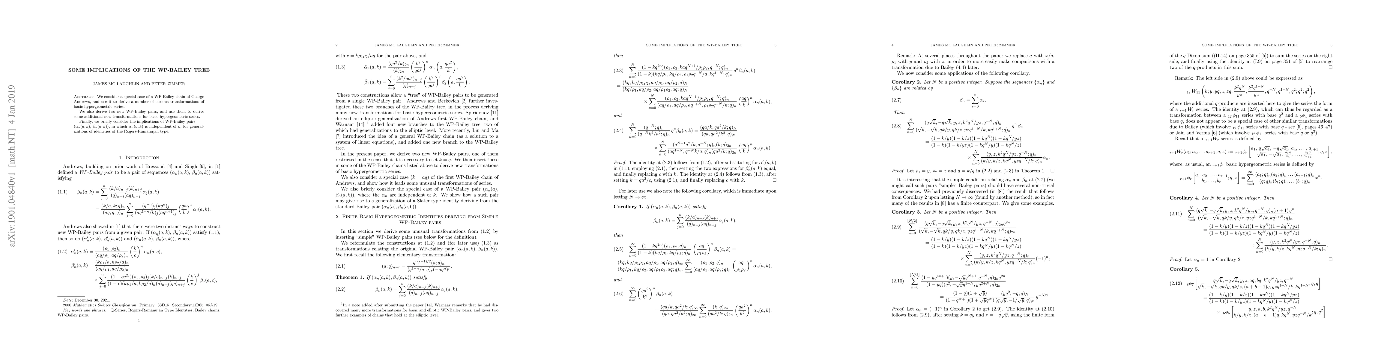 We consider a special case of a WP-Bailey chain of George Andrews, and use it to derive a number of curious transformations of basic hypergeometric series. We also derive two new WP-Bailey pairs, and use them to derive some additional new transformations for basic hypergeometric series. Finally, we briefly consider the implications of WP-Bailey pairs\\ $(\alpha_n(a,k)$, $\beta_n(a,k))$, in which $\alpha_n(a,k)$ is independent of $k$, for generalizations of identities of the Rogers-Ramanujan type.