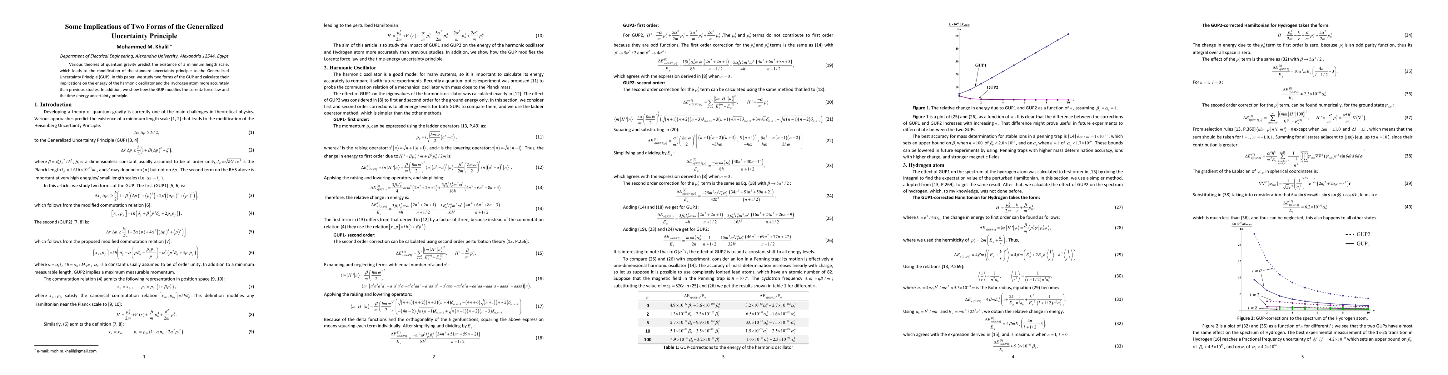 This paper investigates two forms of the Generalized Uncertainty Principle (GUP) arising from quantum gravity theories, analyzing their refined implications on the energy levels of the harmonic oscillator and Hydrogen atom, and demonstrating modifications to the Lorentz force law and time-energy uncertainty principle.