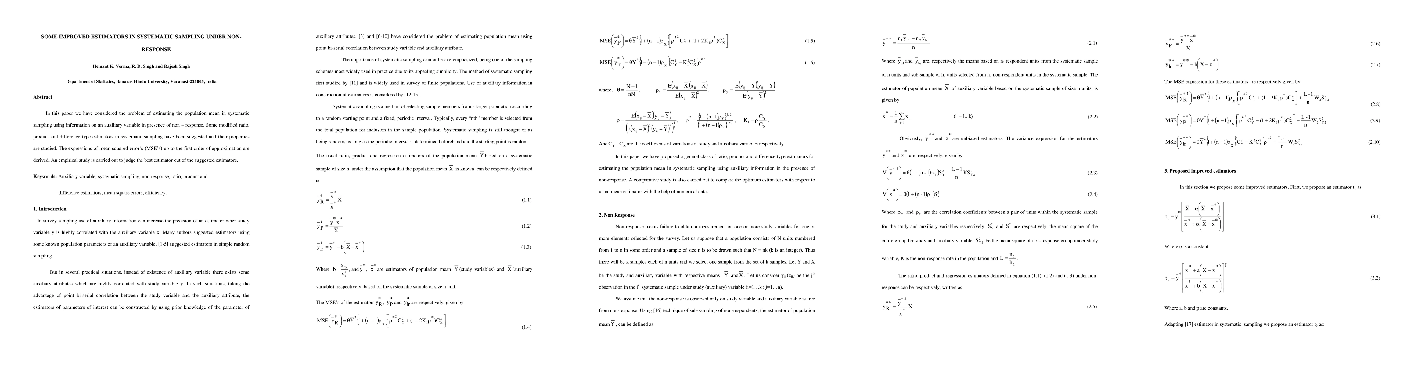 This paper proposes improved estimators for systematic sampling in the presence of non-response, using auxiliary variables to estimate population mean. An empirical study evaluates the performance of suggested estimators and provides insights into their accuracy.