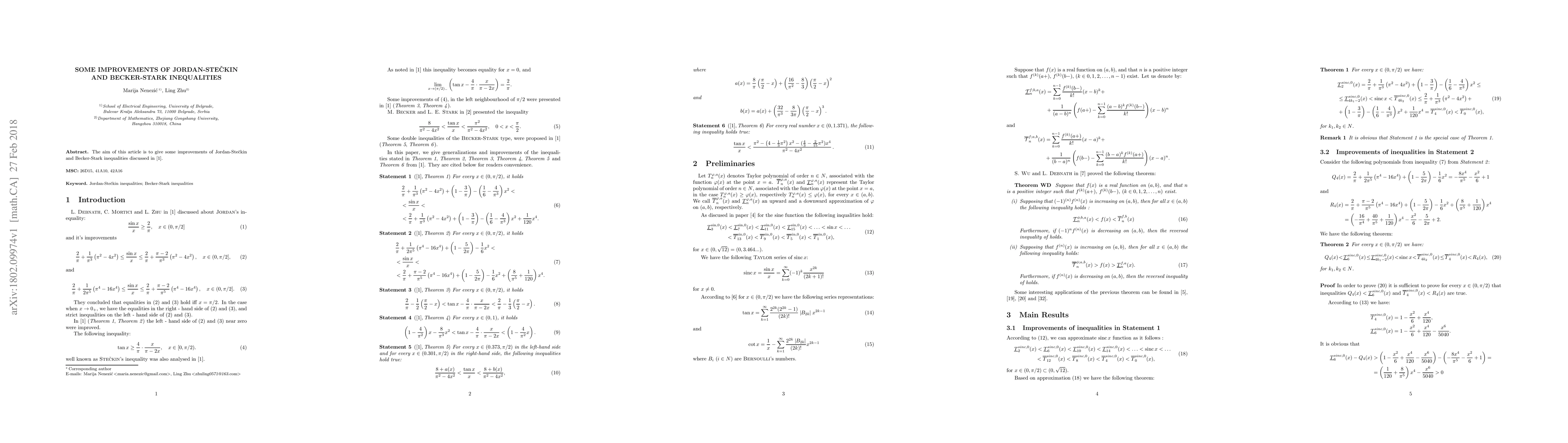 The aim of this article is to give some improvements of Jordan-Steckin and Becker-Stark inequalities discussed in [1].