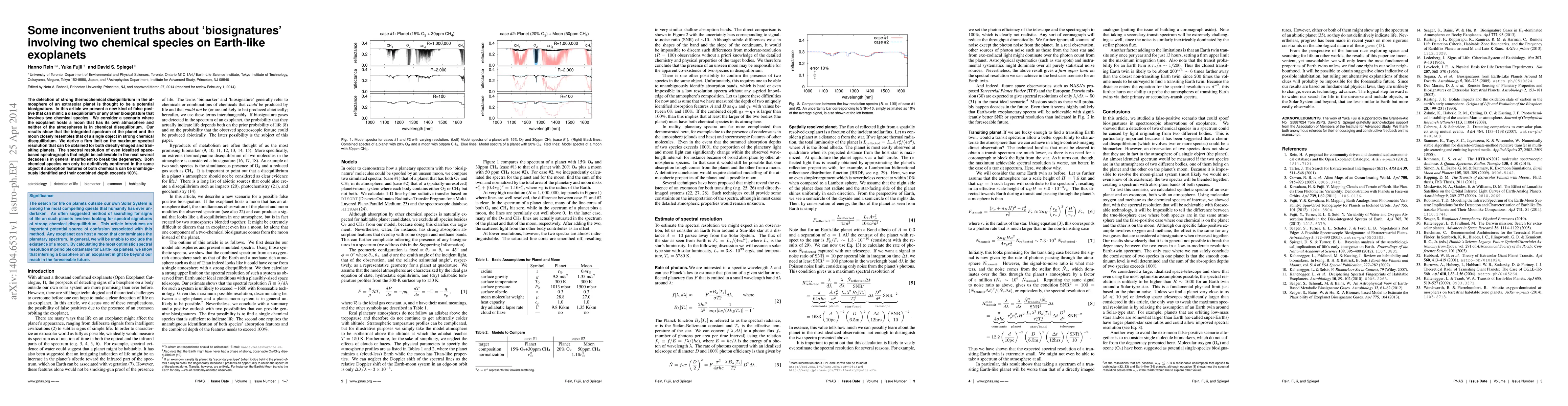 This paper identifies a new type of false positive that mimics biosignatures in the atmospheres of Earth-like exoplanets, caused by the presence of a moon with its own atmosphere. It concludes that current and near-future spectral resolutions are insufficient to distinguish between such false positives and genuine biosignatures.