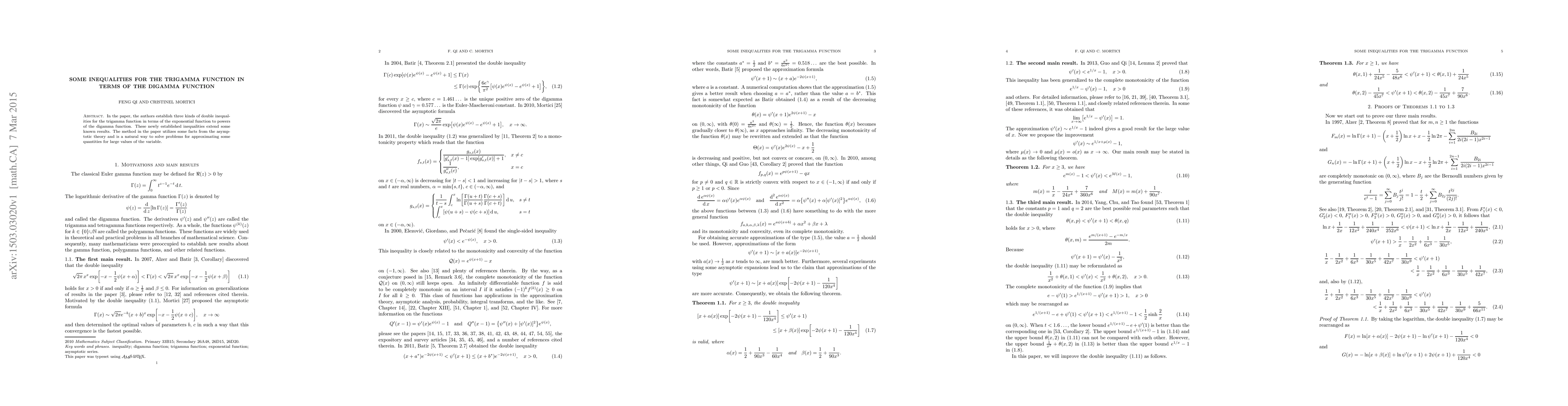 Researchers establish new inequalities for the trigamma function in terms of the digamma function, extending existing results through asymptotic theory, with implications for approximating quantities for large values.