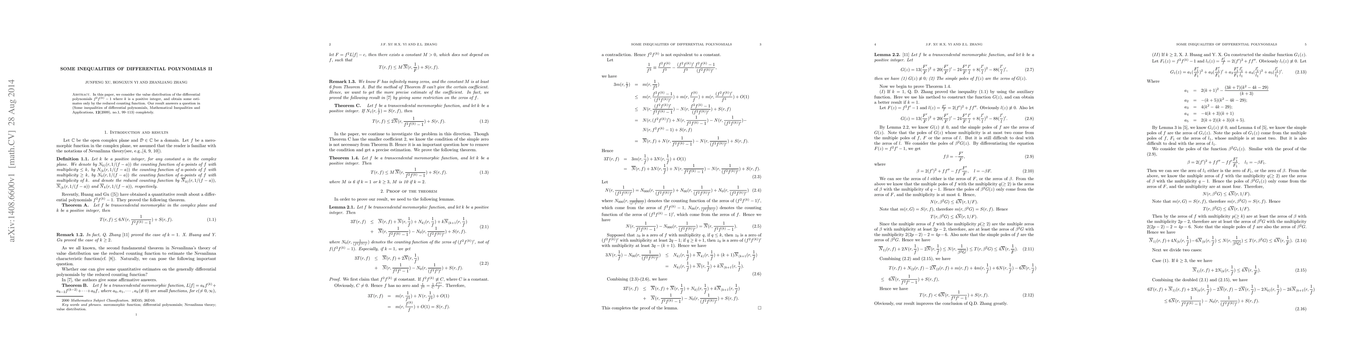 In this paper, we consider the value distribution of the differential polynomials $f^2f^{(k)}-1$ where $k$ is a positive integer, and obtain some estimates only by the reduced counting function. Our result answers a question in (Some inequalities of differential polynomials, Mathematical Inequalities and Applications, \textbf{12}(2009), no.1, 99--113) completely.