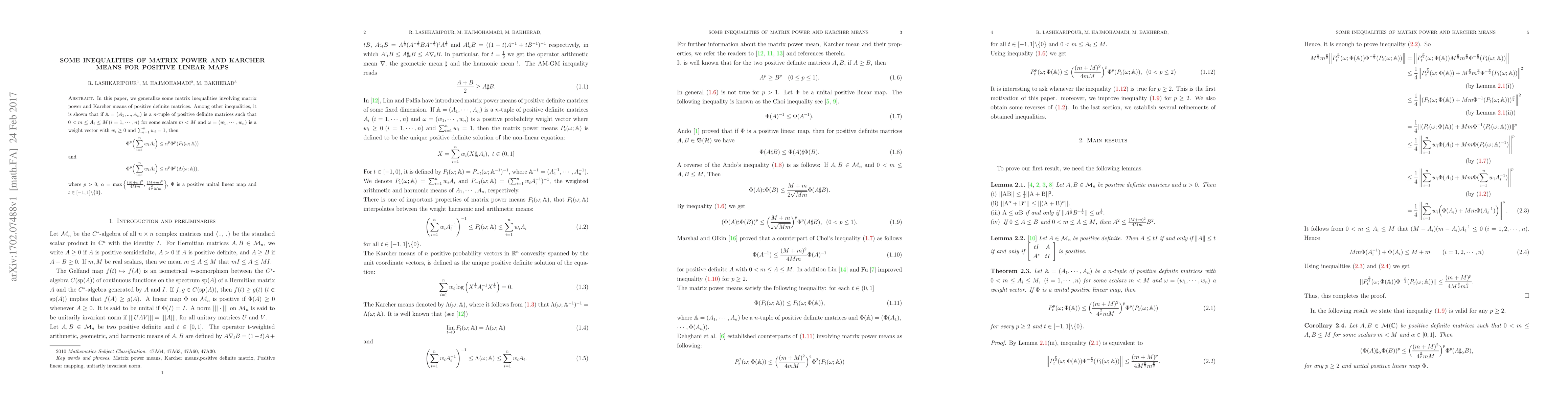 and Karcher means of positive definite matrices. Among other inequalities, it
