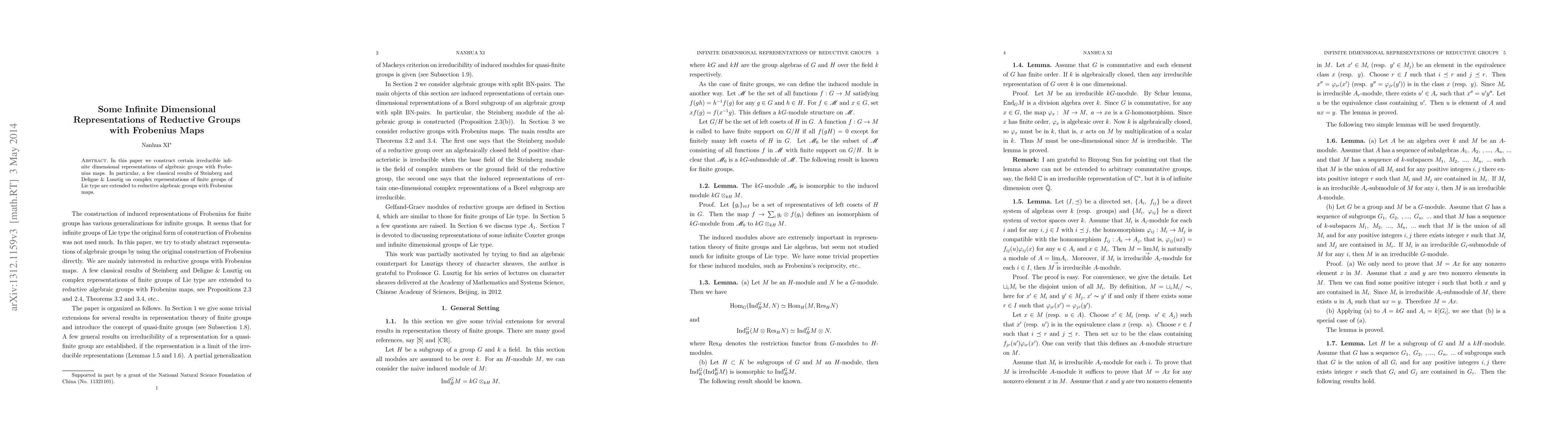 This paper constructs irreducible infinite-dimensional representations of reductive algebraic groups with Frobenius maps, extending classical results of Steinberg and Deligne & Lusztig from finite groups to these algebraic groups.