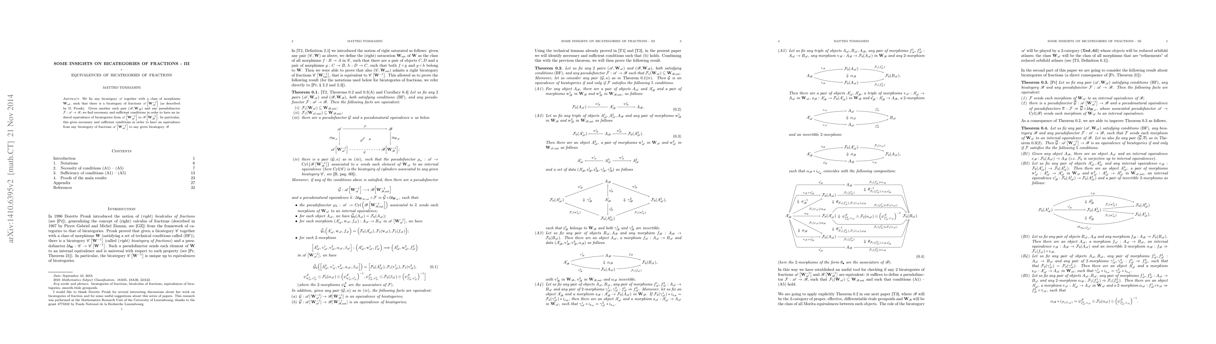 We fix any bicategory $\mathscr{A}$ together with a class of morphisms $\mathbf{W}_{\mathscr{A}}$, such that there is a bicategory of fractions $\mathscr{A}[\mathbf{W}_{\mathscr{A}}^{-1}]$. Given another such pair $(\mathscr{B},\mathbf{W}_{\mathscr{B}})$ and any pseudofunctor $\mathcal{F}:\mathscr{A}\rightarrow\mathscr{B}$, we find necessary and sufficient conditions in order to have an induced equivalence of bicategories from $\mathscr{A}[\mathbf{W}_{\mathscr{A}}^{-1}]$ to $\mathscr{B}[\mathbf{W}_{\mathscr{B}}^{-1}]$. In particular, this gives necessary and sufficient conditions in order to have an equivalence from any bicategory of fractions $\mathscr{A}[\mathbf{W}_{\mathscr{A}}^{-1}]$ to any given bicategory $\mathscr{B}$.