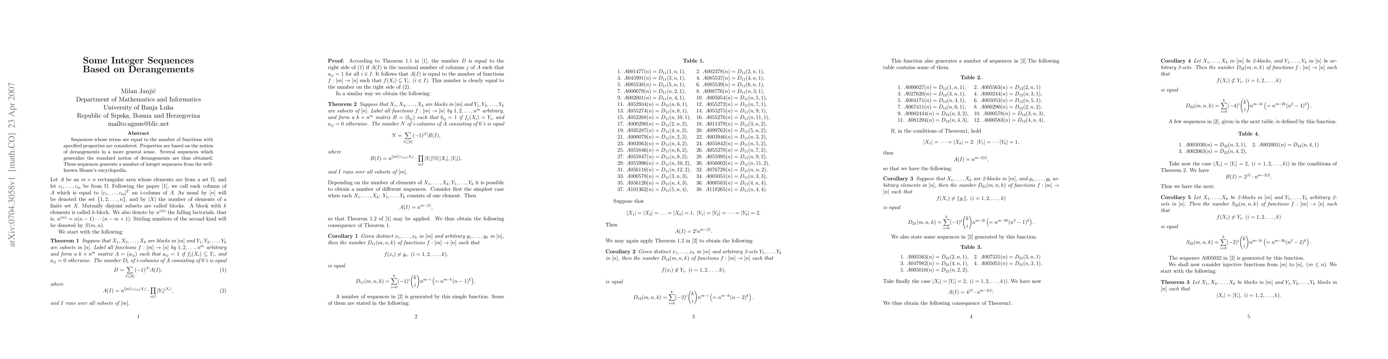 This paper explores integer sequences derived from functions with properties related to derangements, generalizing the standard notion to produce several new sequences that correspond to entries in Sloane's encyclopedia. The study focuses on the combinatorial properties of these sequences.