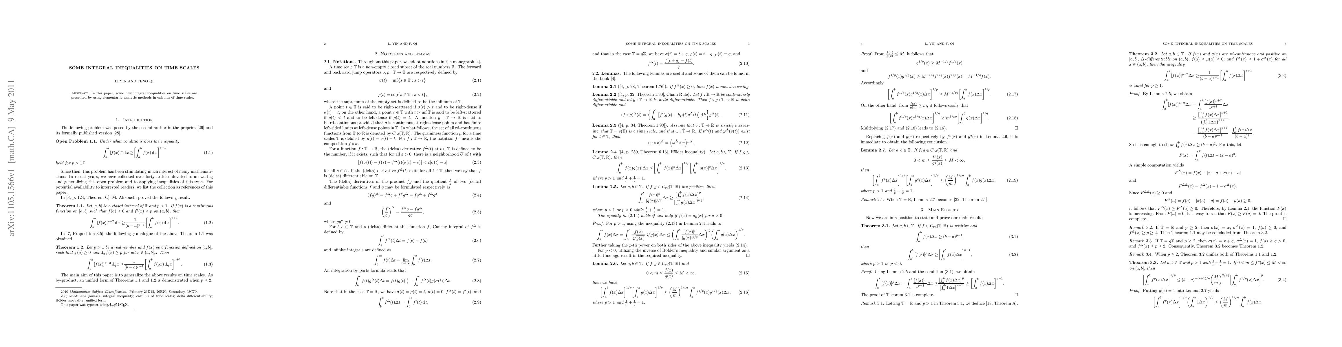 Summary: This paper introduces novel integral inequalities on time scales, employing elementary analytic techniques from the calculus of time scales to derive these results. The findings contribute to the mathematical framework for time scale analysis.