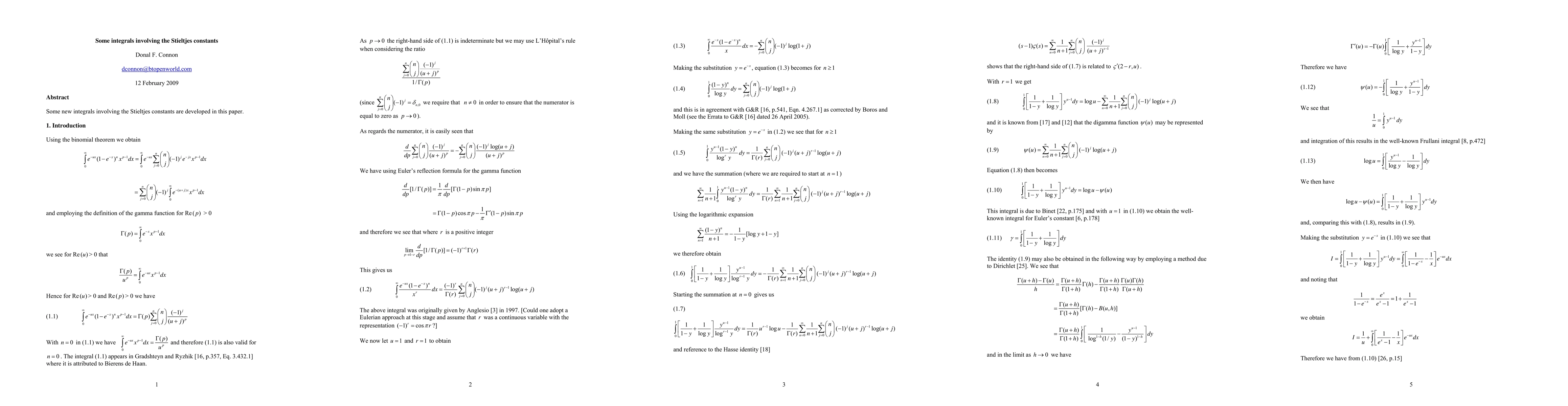 Summary: This paper introduces novel integrals that incorporate the Stieltjes constants, expanding the mathematical framework for understanding these constants through integral representations.