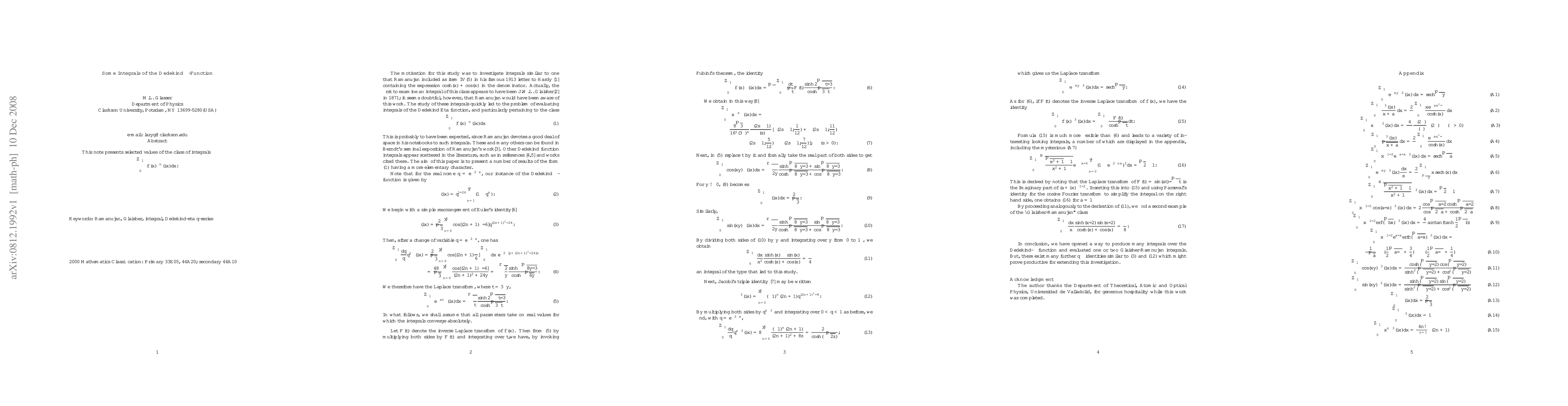 Summary: The paper evaluates specific definite integrals involving powers of the Dedekind eta-function with imaginary arguments, contributing to the understanding of its properties and applications.