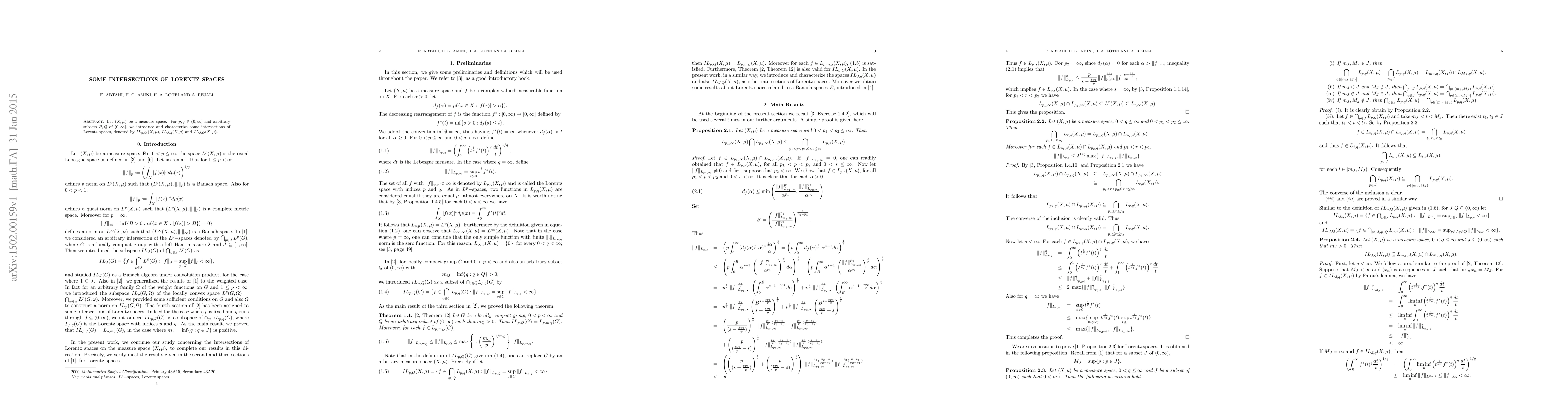 The paper introduces and characterizes intersections of Lorentz spaces for arbitrary subsets of (0,°,×] and provides a new understanding of these spaces for measure spaces. It focuses on key findings related to the characterization of these intersections.
