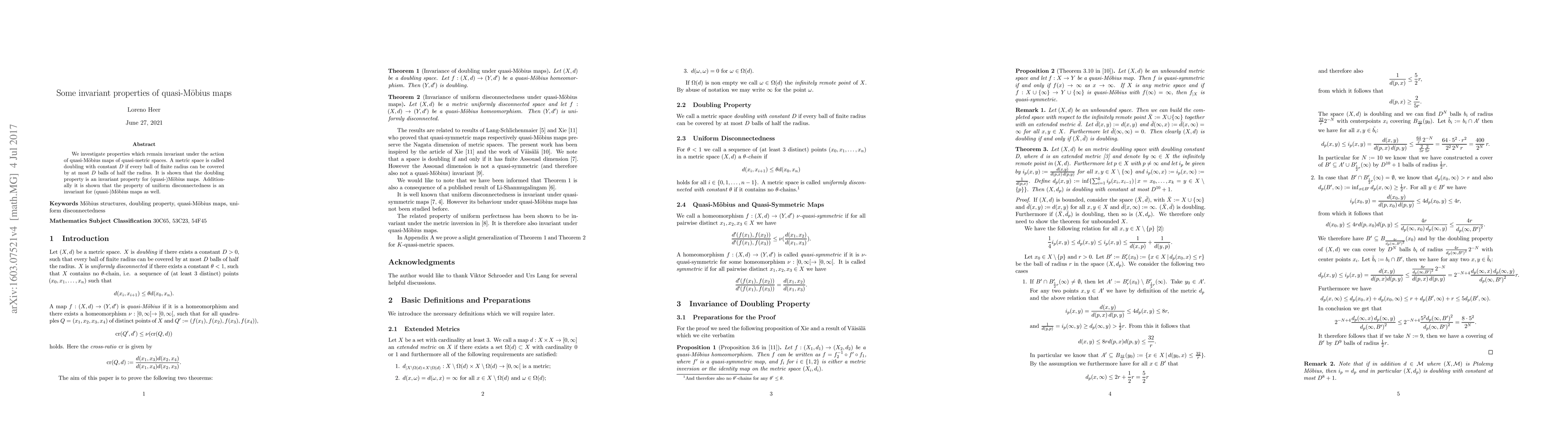 This paper examines invariant properties under quasi-Möbius maps in quasi-metric spaces, proving that the doubling property and uniform disconnectedness remain invariant. It highlights the significance of these properties in (quasi-)Möbius spaces.