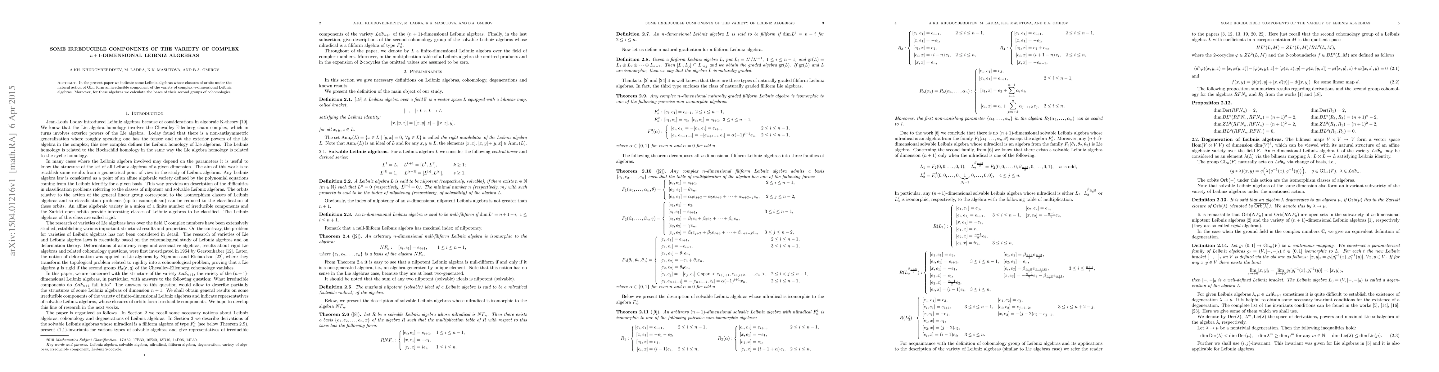 This paper identifies specific irreducible components of the variety of complex $n$-dimensional Leibniz algebras, demonstrating that the closures of orbits under $\GL_n$ action constitute such components, and computes the bases for their second cohomology groups.