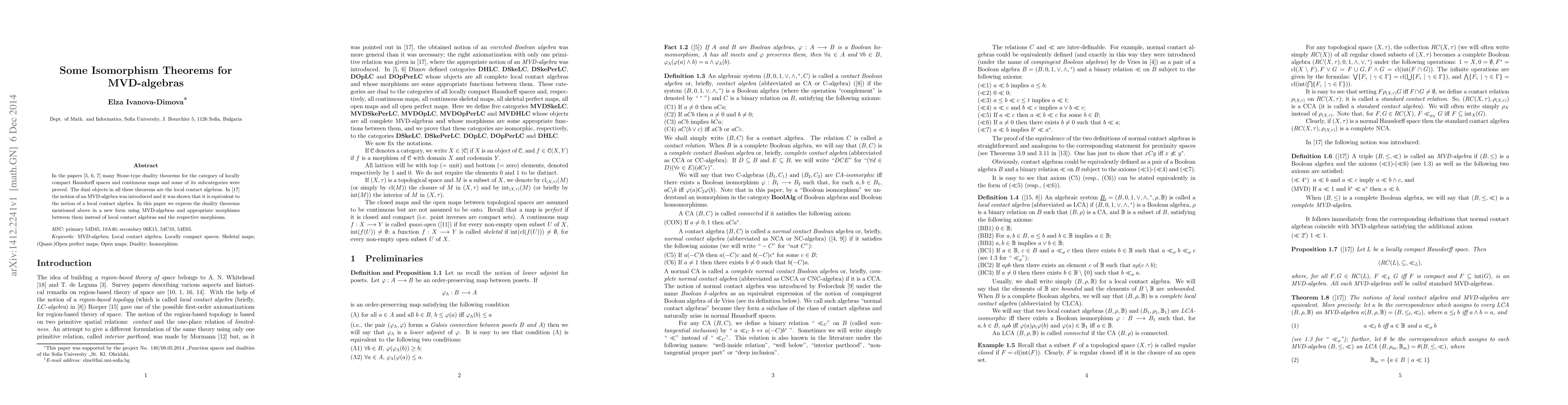 In three recaent papers of G. Dimov, many Stone-type duality theorems for the category of locally compact Hausdorff spaces and continuous maps and some of its subcategories were proved. The dual objects in all these theorems are the local contact algebras. In a paper of D. Vakarelov, G. Dimov, I. Duntsch, and B. Bennett, the notion of an MVD-algebra was introduced and it was shown that it is equivalent to the notion of a local contact algebra. In this paper we express the duality theorems mentioned above in a new form using MVD-algebras and appropriate morphisms between them instead of local contact algebras and the respective morphisms.