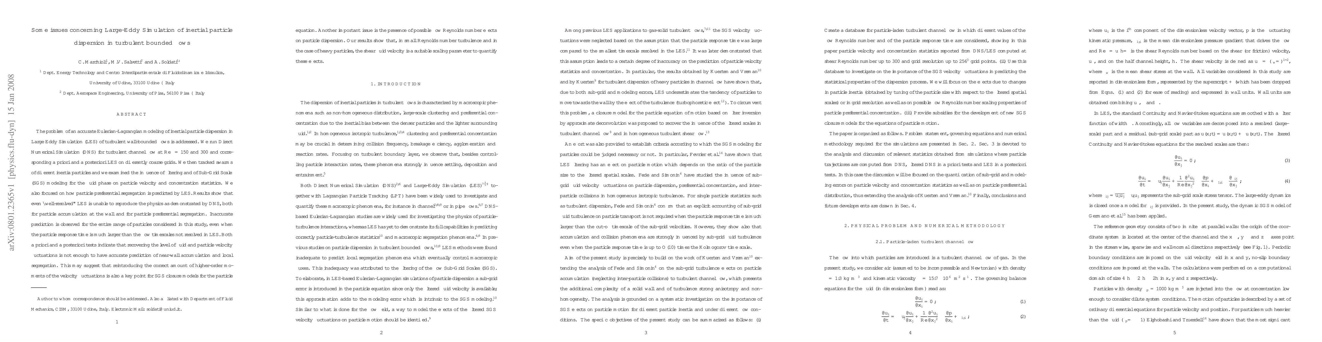 The paper presents a detailed analysis of the impact of Sub-Grid Scale (SGS) modeling on inertial particle dispersion in LES, highlighting the importance of higher-order velocity moments in SGS closure models for accurate particle predictions.