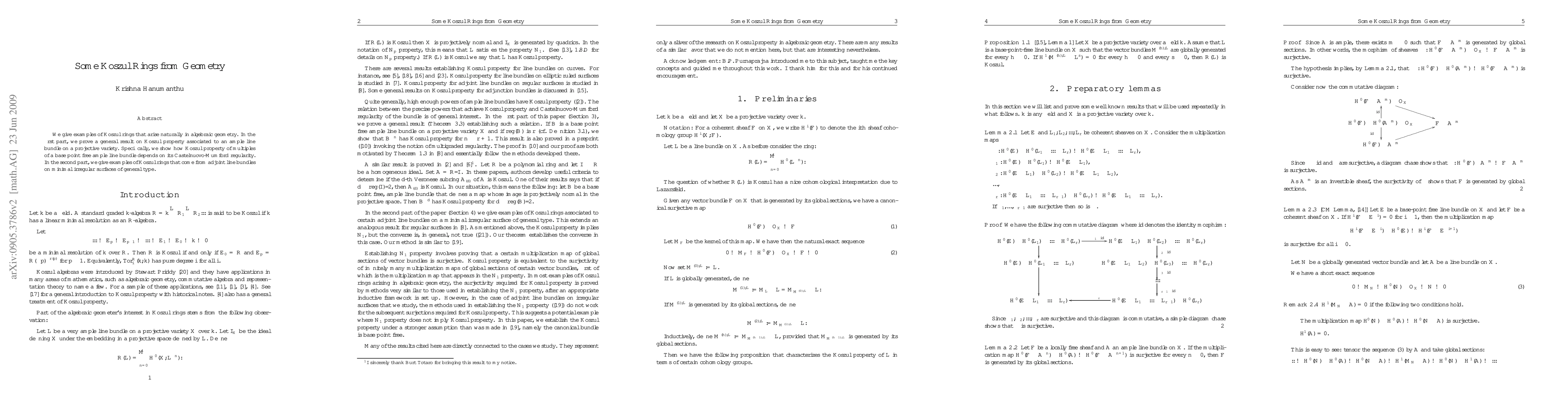 Summary: This paper presents examples of Koszul rings originating from algebraic geometry, proving that the Koszul property of line bundles on projective varieties is linked to their Castelnuovo-Mumford regularity, and provides instances of Koszul rings from adjoint line bundles on irregular surfaces of general type.
