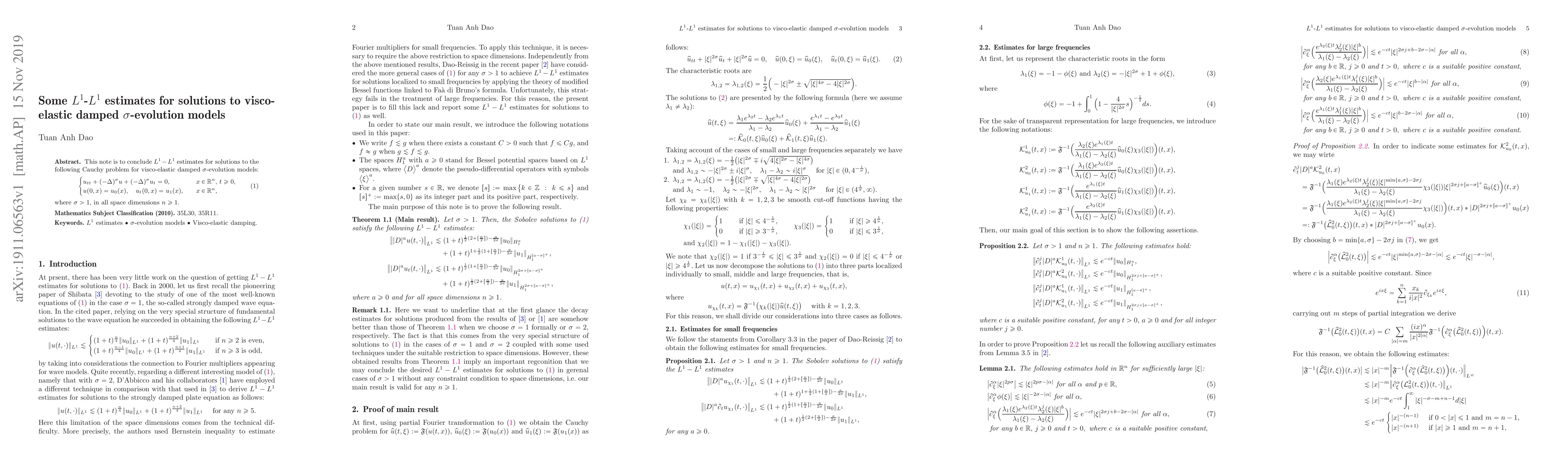 This note is to conclude $L^1-L^1$ estimates for solutions to the following Cauchy problem for visco-elastic damped $\sigma$-evolution models: \begin{equation} \begin{cases} u_{tt}+ (-\Delta)^\sigma u+ (-\Delta)^\sigma u_t = 0, &\quad x\in \mathbb{R}^n,\, t \ge 0, \\ u(0,x)= u_0(x),\quad u_t(0,x)=u_1(x), &\quad x\in \mathbb{R}^n, \label{pt1.1} \end{cases} \end{equation} where $\sigma> 1$, in all space dimensions $n\ge 1$.