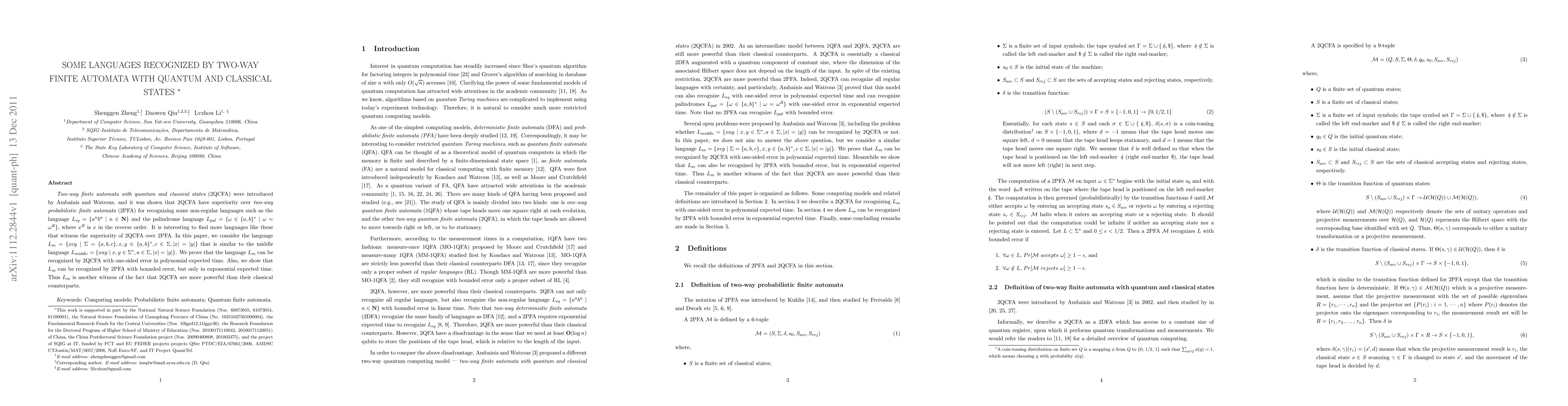 This paper demonstrates that a specific language can be recognized by two-way finite automata with quantum and classical states in polynomial time, while its recognition by two-way probabilistic finite automata requires exponential time, highlighting the superiority of 2QCFA over 2PFA.