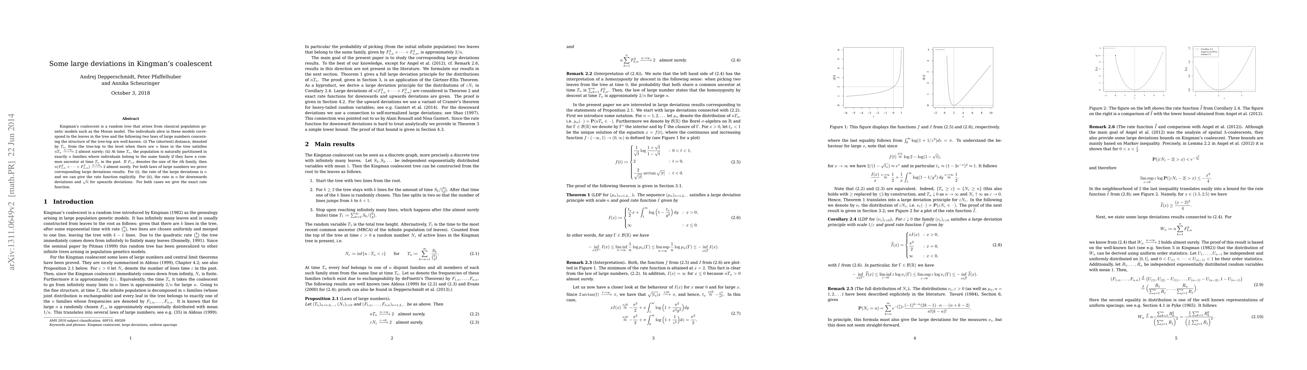 This paper investigates deviations from Kingman's coalescent, a random tree arising from population genetic models, proving large deviation results for two laws of large numbers concerning the tree's structure and partitioning of individuals into families.