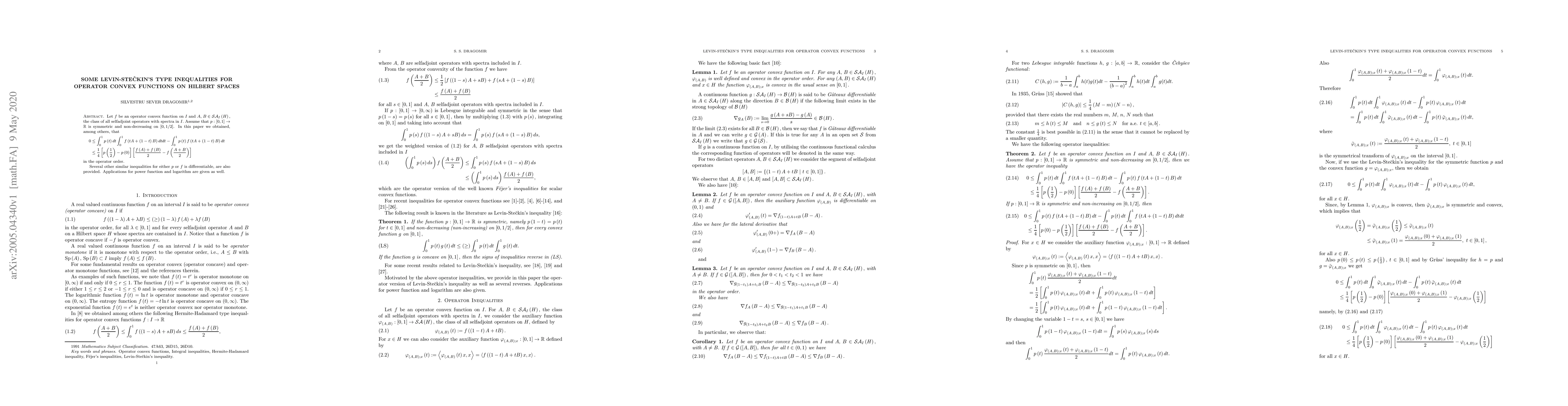 In this paper we obtain some operator versions of Levin-Steckin integral inequality.