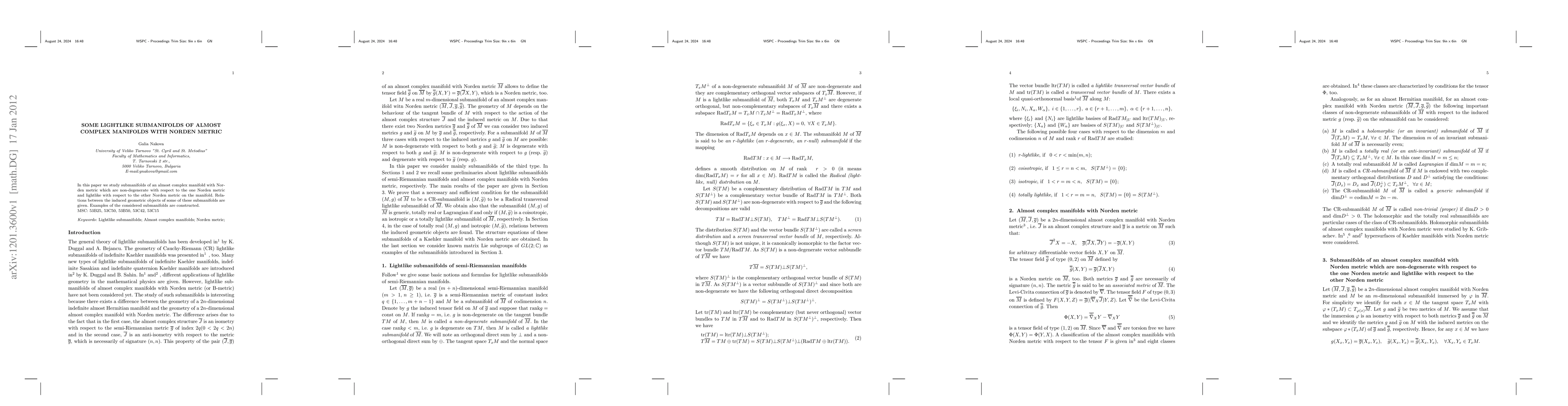 This paper investigates non-degenerate, lightlike submanifolds within an almost complex manifold equipped with a Norden metric, presenting relations between induced geometric objects and constructing examples of such submanifolds.