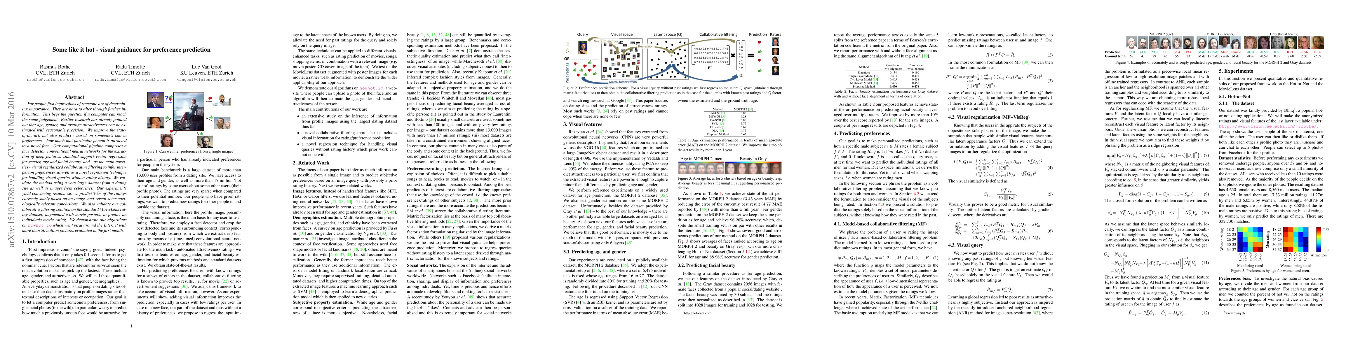 For people first impressions of someone are of determining importance. They are hard to alter through further information. This begs the question if a computer can reach the same judgement. Earlier research has already pointed out that age, gender, and average attractiveness can be estimated with reasonable precision. We improve the state-of-the-art, but also predict - based on someone's known preferences - how much that particular person is attracted to a novel face. Our computational pipeline comprises a face detector, convolutional neural networks for the extraction of deep features, standard support vector regression for gender, age and facial beauty, and - as the main novelties - visual regularized collaborative filtering to infer inter-person preferences as well as a novel regression technique for handling visual queries without rating history. We validate the method using a very large dataset from a dating site as well as images from celebrities. Our experiments yield convincing results, i.e. we predict 76% of the ratings correctly solely based on an image, and reveal some sociologically relevant conclusions. We also validate our collaborative filtering solution on the standard MovieLens rating dataset, augmented with movie posters, to predict an individual's movie rating. We demonstrate our algorithms on howhot.io which went viral around the Internet with more than 50 million pictures evaluated in the first month.