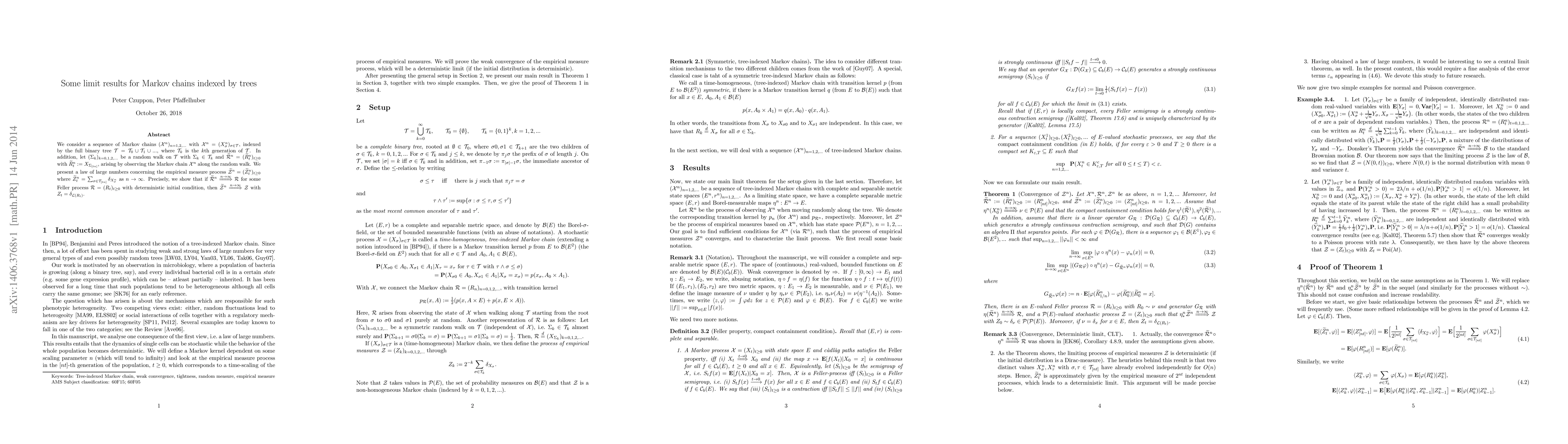 This paper investigates a sequence of Markov chains indexed by a full binary tree, observing them along a random walk. It establishes a law of large numbers for the empirical measure process, showing convergence to a deterministic limit as the number of chains increases.