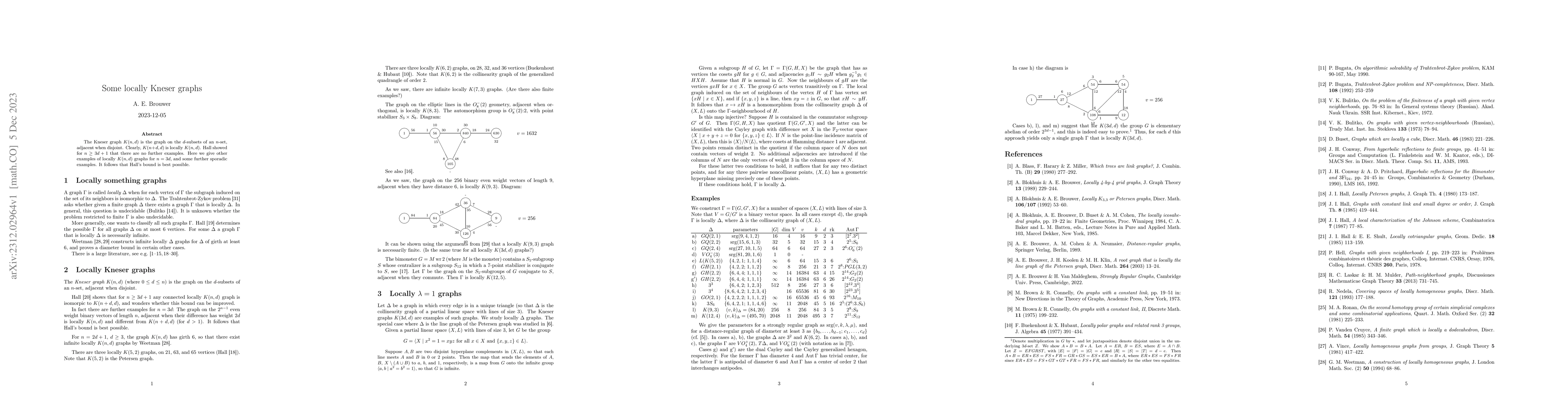 This paper explores locally Kneser graphs, specifically those resembling $K(n,d)$ structures, and identifies additional examples for $n = 3d$, demonstrating that Hall's bound is optimal.