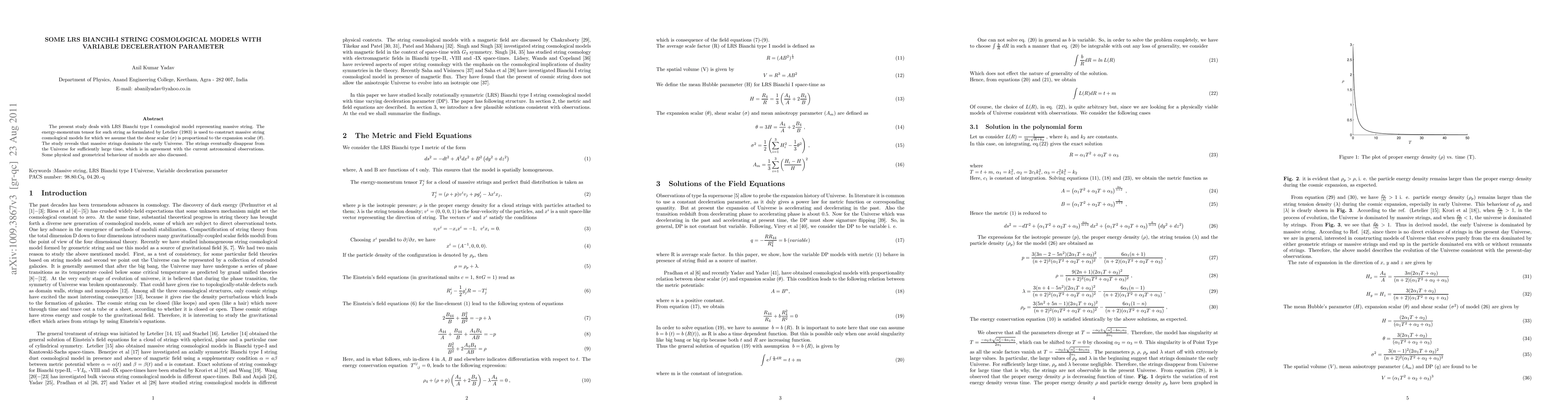 This paper explores LRS Bianchi-I string cosmological models using Letelier's massive string energy-momentum tensor, showing that massive strings dominate the early Universe but eventually vanish, aligning with current astronomical observations. It also discusses the physical and geometrical behaviors of these models.