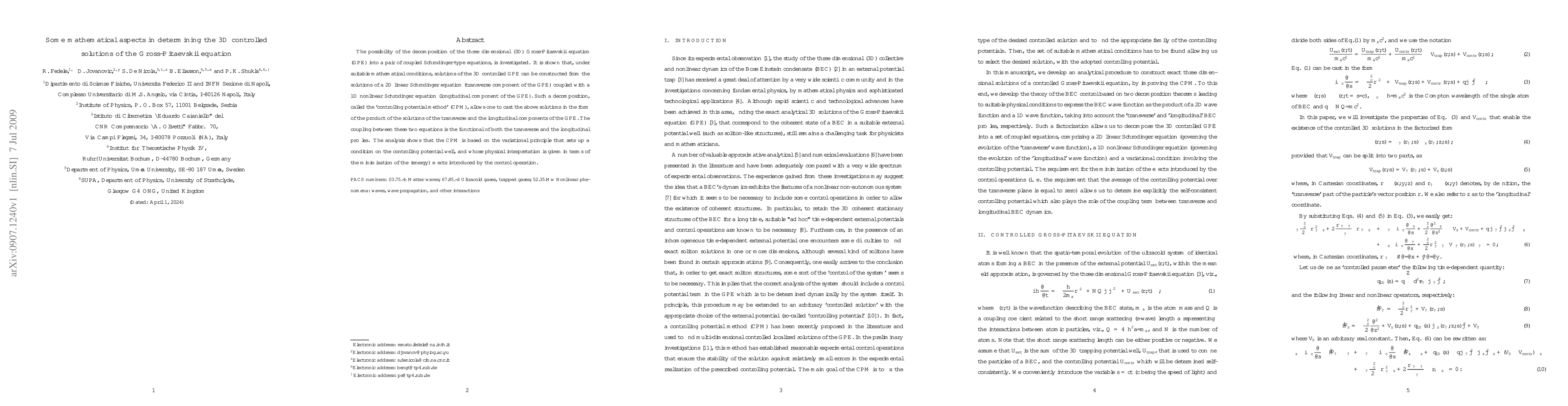 This paper explores the decomposition of the 3D Gross-Pitaevskii equation into coupled Schrödinger-type equations, demonstrating that solutions can be constructed from a 2D linear Schrödinger equation and a 1D nonlinear Schrödinger equation using the 'controlling potential method'. The method is grounded in a variational principle that minimizes energy effects introduced by the control operation.