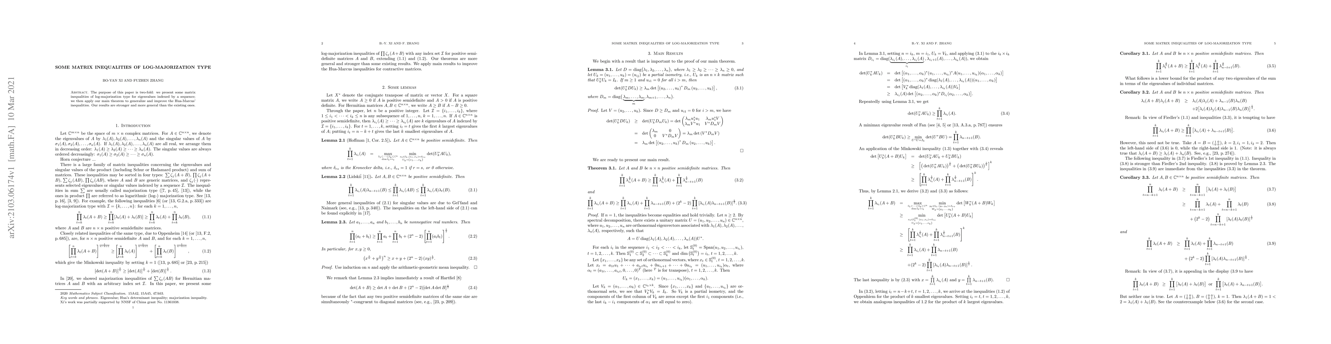 This paper presents matrix inequalities of log-majorization type for eigenvalues and uses these to generalize and improve Hua-Marcus' inequalities, offering stronger and more general results than previous work.