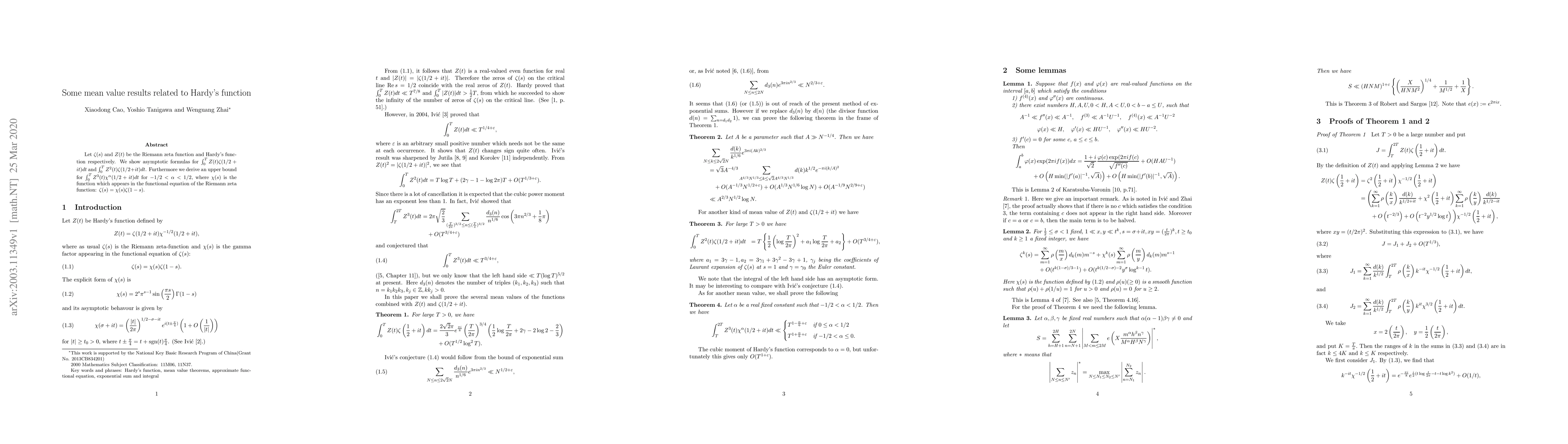 Let $\zeta(s)$ and $Z(t)$ be the Riemann zeta function and Hardy's function respectively. We show asymptotic formulas for $\int_0^T Z(t)\zeta(1/2+it)dt$ and $\int_0^T Z^2(t) \zeta(1/2+it)dt$. Furthermore we derive an upper bound for $\int_0^T Z^3(t)\chi^{\alpha}(1/2+it)dt$ for $-1/2<\alpha<1/2$, where $\chi(s)$ is the function which appears in the functional equation of the Riemann zeta function: $\zeta(s)=\chi(s)\zeta(1-s)$.