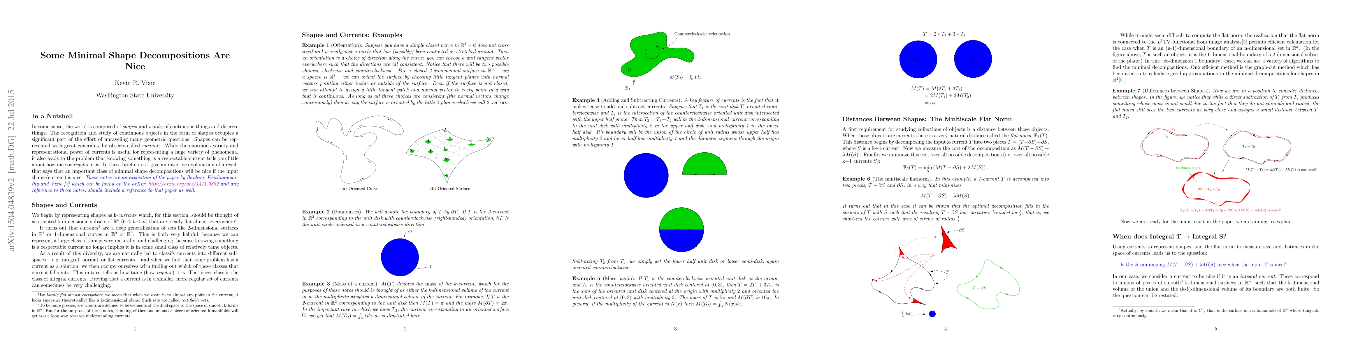 In some sense, the world is composed of shapes and words, of continuous things and discrete things. The recognition and study of continuous objects in the form of shapes occupies a significant part of the effort of unraveling many geometric questions. Shapes can be rep- resented with great generality by objects called currents. While the enormous variety and representational power of currents is useful for representing a huge variety of phenomena, it also leads to the problem that knowing something is a respectable current tells you little about how nice or regular it is. In these brief notes I give an intuitive explanation of a result that says that an important class of minimal shape decompositions will be nice if the input shape (current) is nice. These notes are an exposition of the paper by Ibrahim, Krishnamoorthy and Vixie which can be found on the arXiv:1411.0882 and any reference to these notes, should include a reference to that paper as well.