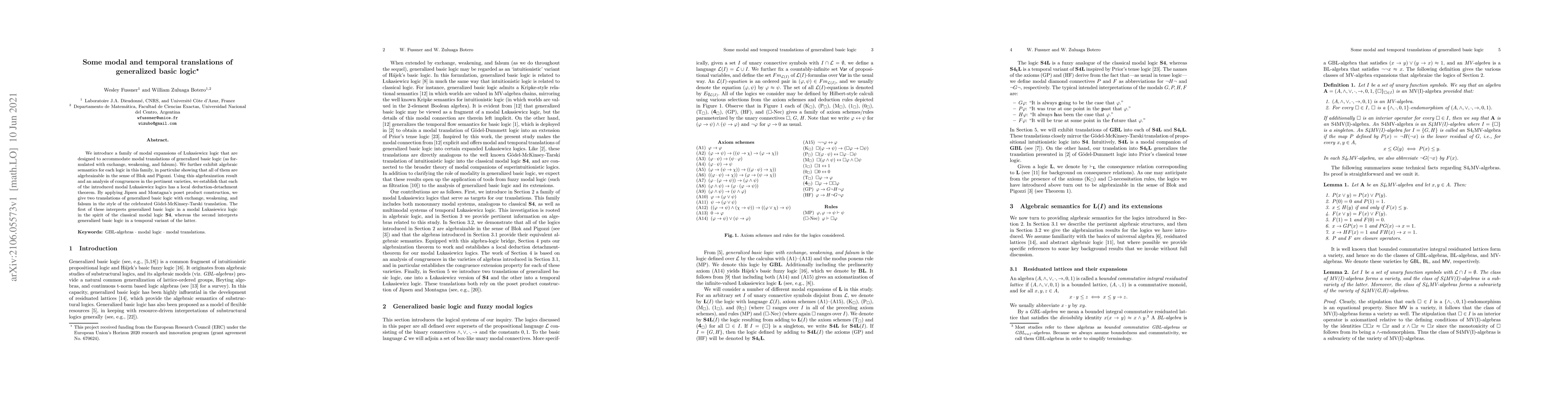 This paper introduces modal expansions of {\L}ukasiewicz logic to translate generalized basic logic, providing algebraic semantics and proving local deduction-detachment theorems. It also presents two translations of generalized basic logic using Jipsen and Montagna's poset product construction, one in modal {\L}ukasiewicz logic akin to S4 and another in its temporal variant.