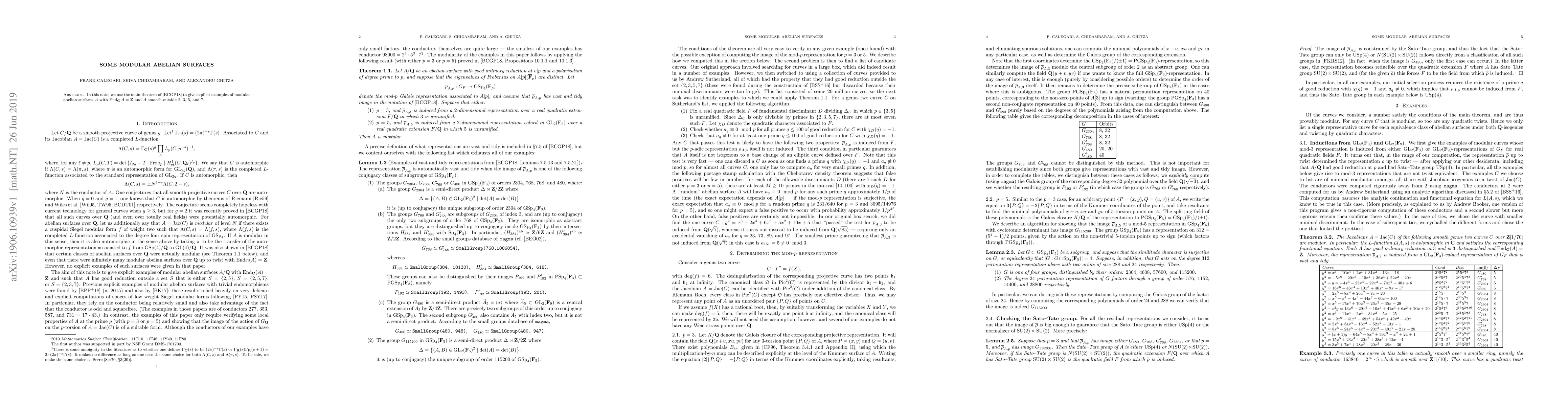 We use the main theorem of Boxer-Calegari-Gee-Pilloni (arXiv:1812.09269) to give explicit examples of modular abelian surfaces $A$ over $\mathbf{Q}$ without extra endomorhpisms such that $A$ has good reduction outside the primes 2, 3, 5, and 7.