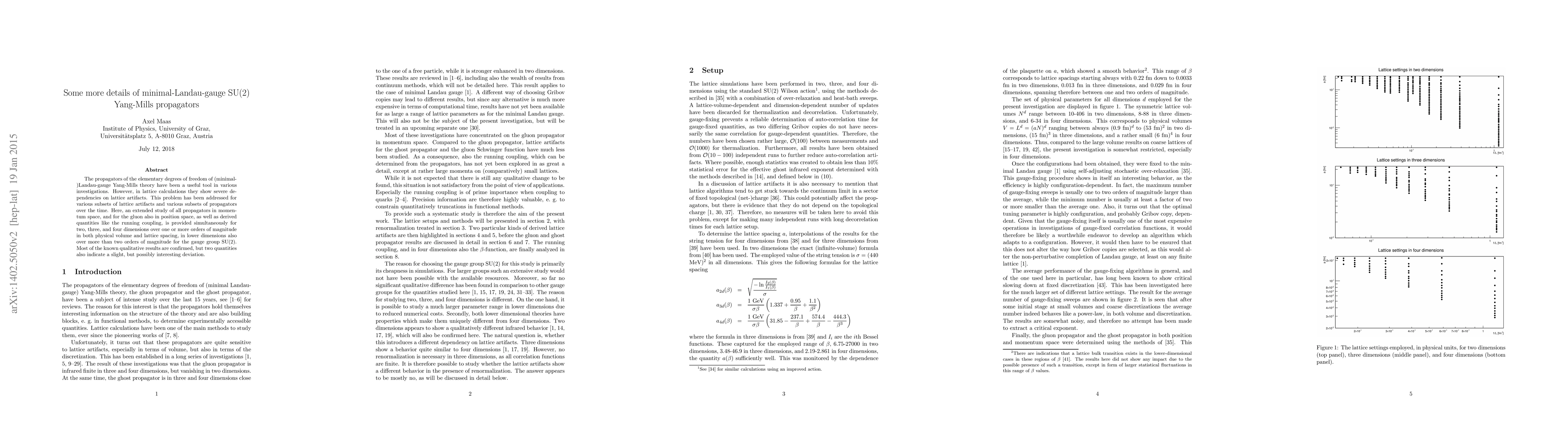 This paper investigates the propagators in minimal-Landau-gauge Yang-Mills theory, confirming known qualitative results while noting a slight deviation in two quantities that may warrant further study. The study covers all propagators in momentum and position space across two, three, and four dimensions, examining their behavior over various physical volumes and lattice spacings.