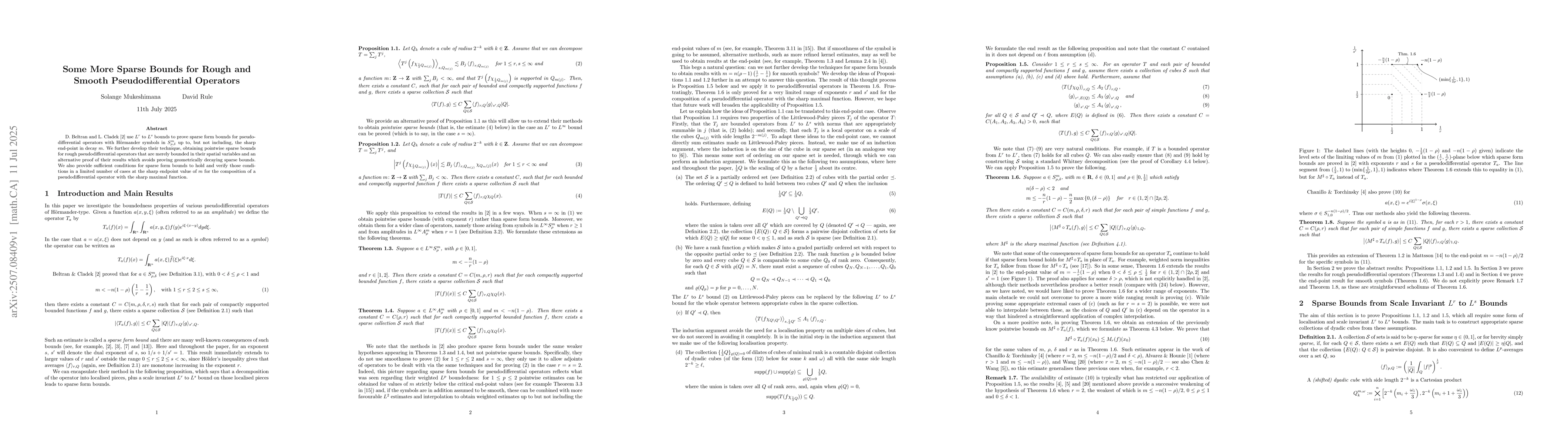 D.~Beltran and L.~Cladek (arXiv:1711.02339) use $L^r$ to $L^s$ bounds to prove sparse form bounds for pseudodifferential operators with H\"ormander symbols in $S^m_{\rho,\delta}$ up to, but not including, the sharp end-point in decay $m$. We further develop their technique, obtaining pointwise sparse bounds for rough pseudodifferential operators that are merely bounded in their spatial variables and an alternative proof of their results which avoids proving geometrically decaying sparse bounds. We also provide sufficient conditions for sparse form bounds to hold and verify those conditions in a limited number of cases at the sharp endpoint value of $m$ for the composition of a pseudodifferential operator with the sharp maximal function.