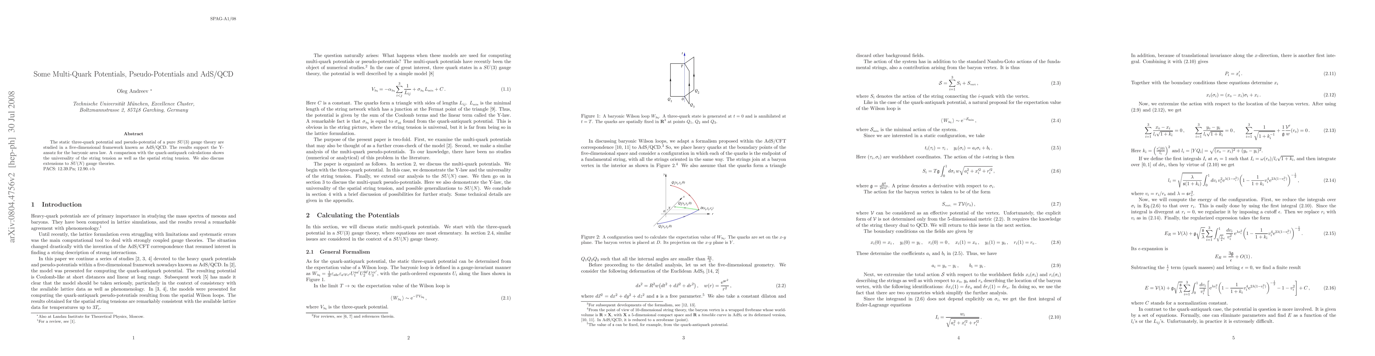 The static three-quark potential and pseudo-potential of a pure SU(3) gauge theory are studied in a five-dimensional framework known as AdS/QCD. The results support the Y-ansatz for the baryonic area law. A comparison with the quark-antiquark calculations shows the universality of the string tension as well as the spatial string tension. We also discuss extensions to SU(N) gauge theories.