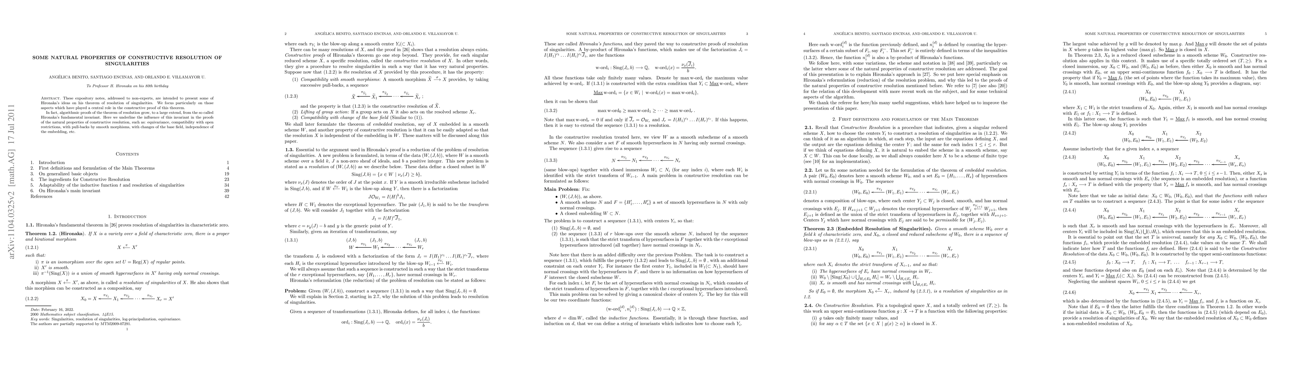 This paper introduces Hironaka's theorem on resolution of singularities, emphasizing its constructive proof aspects. It highlights the role of Hironaka's fundamental invariant in demonstrating natural properties like equivariance and compatibility with various transformations.