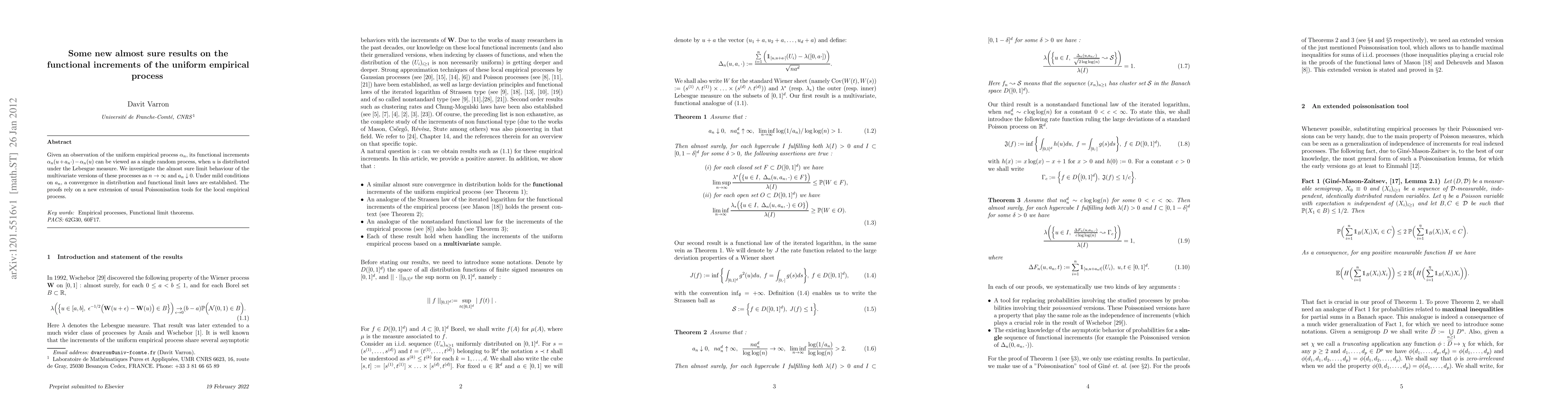 This paper investigates the almost sure limit behavior of functional increments of the uniform empirical process as sample size and increment size approach zero. It establishes convergence in distribution and functional limit laws under mild conditions, utilizing an extended version of Poissonization techniques.