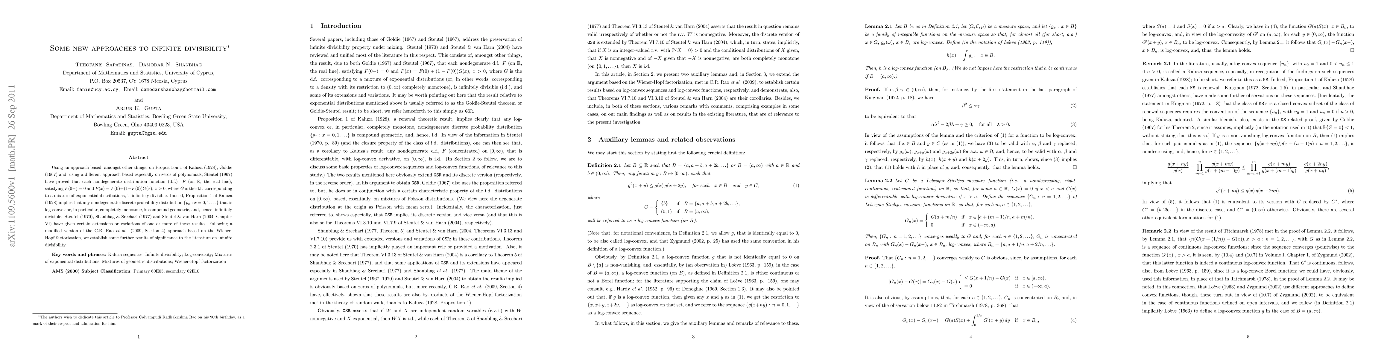 This paper explores new approaches to infinite divisibility of nondegenerate distribution functions, building on prior work by Goldie and Steutel. It establishes further results using a modified Wiener-Hopf factorization method, extending the foundational work of Kaluza and others.