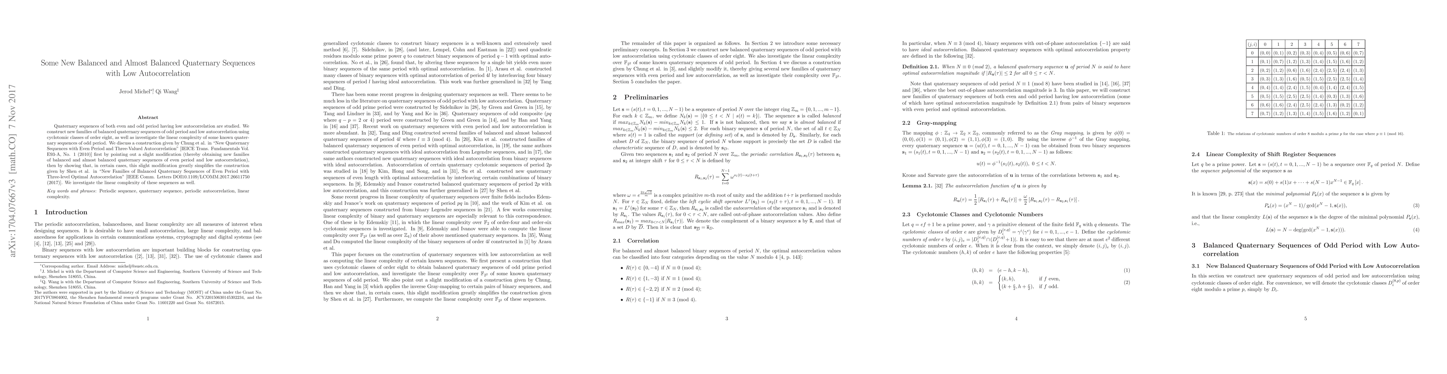 The paper introduces novel methods for constructing balanced quaternary sequences with low autocorrelation and provides a detailed analysis of the linear complexity of these sequences.