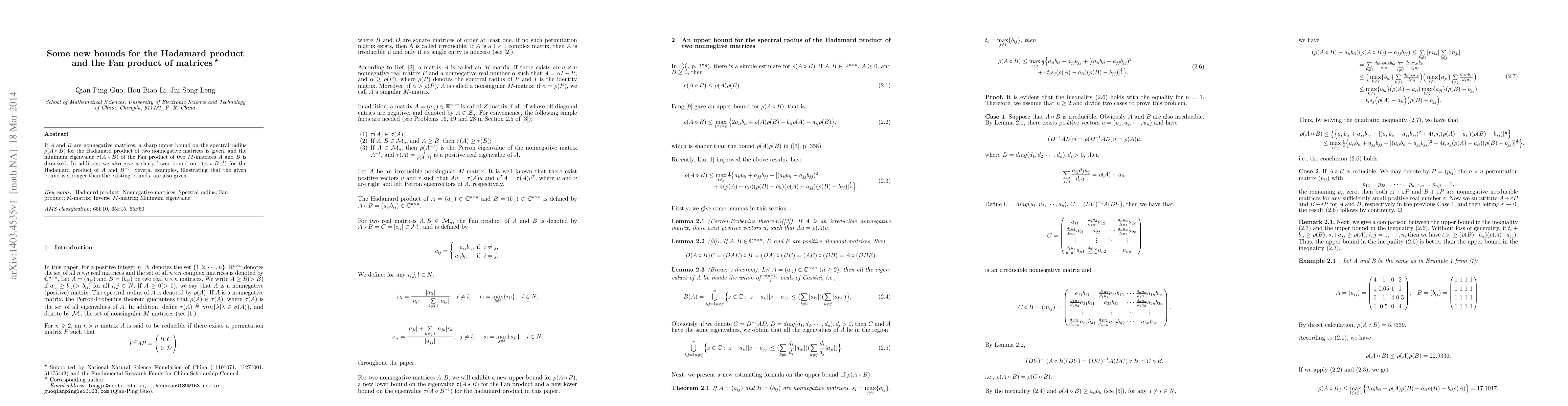 If $A$ and $B$ are nonnegative matrices, a sharp upper bound on the spectral radius $\rho(A\circ B)$ for the Hadamard product of two nonnegative matrices is given, and the minimum eigenvalue $\tau(A\star B)$ of the Fan product of two $M$-matrices $A$ and $B$ is discussed. In addition, we also give a sharp lower bound on $\tau(A\circ B^{-1})$ for the Hadamard product of $A$ and $B^{-1}$. Several examples, illustrating that the given bound is stronger than the existing bounds, are also given.