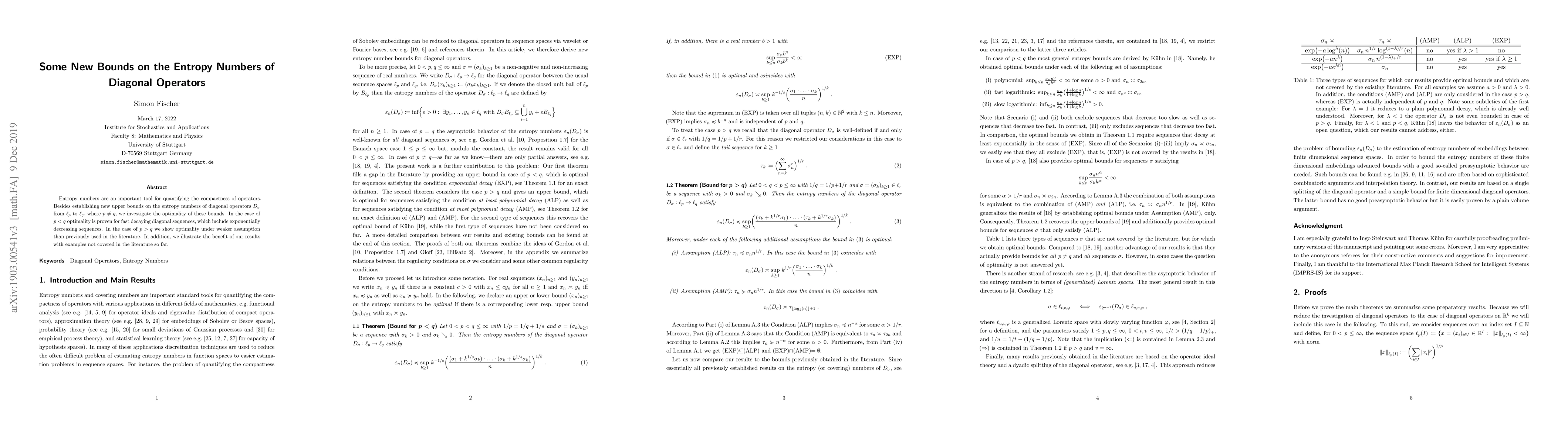 New bounds have been established for the entropy numbers of diagonal operators, with optimality proven in certain cases and illustrated with examples not previously covered.