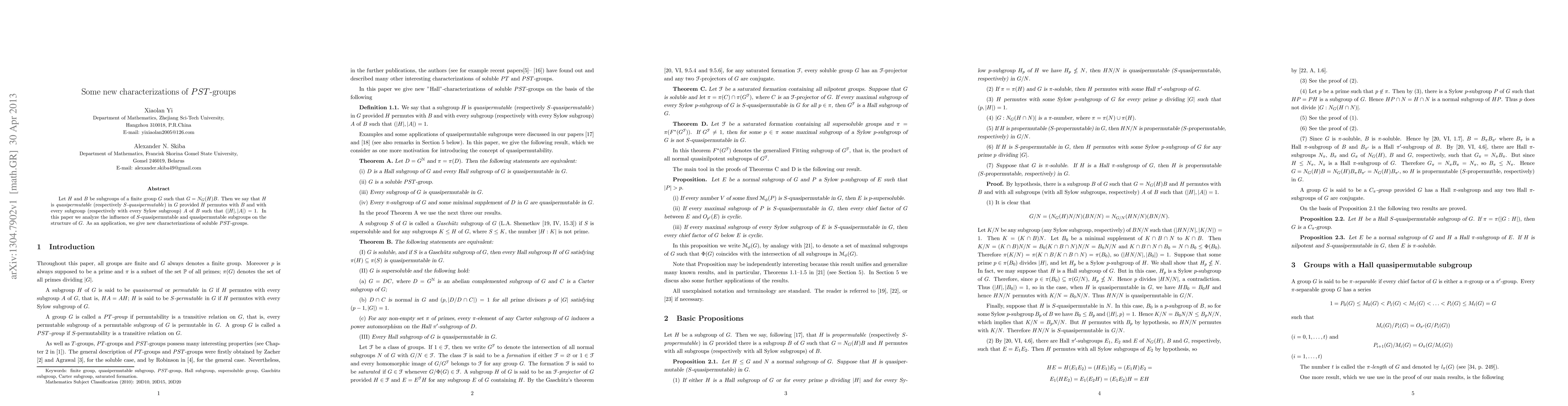 This research paper investigates the properties of subgroups in a finite group G that are quasipermutable or S-quasipermutable, with implications for understanding the structure of soluble PST-groups.