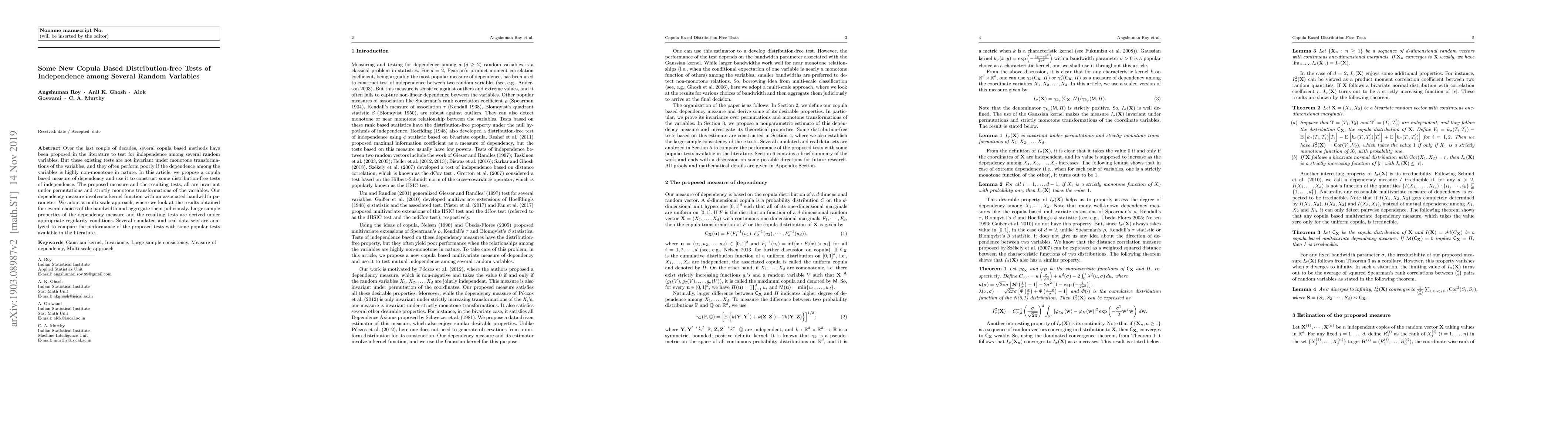 A novel multivariate test of independence was developed, which provides a new tool for researchers and practitioners.