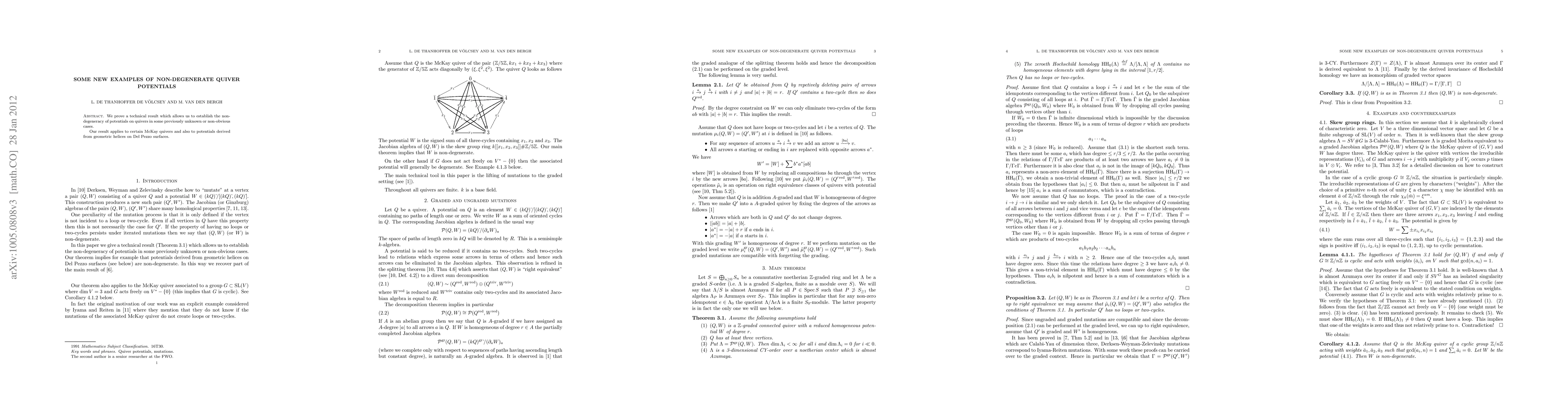 We prove a technical result which allows us to establish the non-degeneracy of potentials on quivers in some previously unknown or non-obvious cases. Our result applies to certain McKay quivers and also to potentials derived from geometric helices on Del Pezzo surfaces.