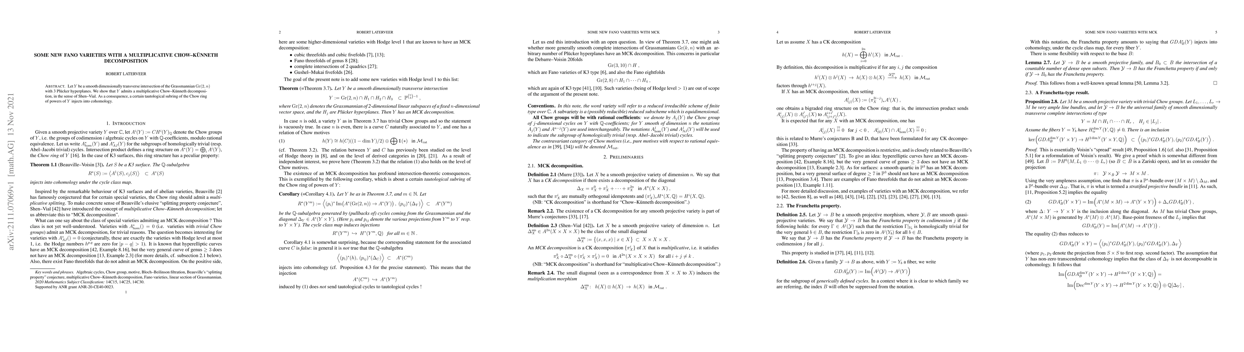 Summary: This paper demonstrates that a smooth intersection of a Grassmannian with three Plücker hyperplanes, denoted as $Y$, exhibits a multiplicative Chow-Künneth decomposition. Consequently, this leads to an injection of a tautological subring of the Chow ring of powers of $Y$ into cohomology.